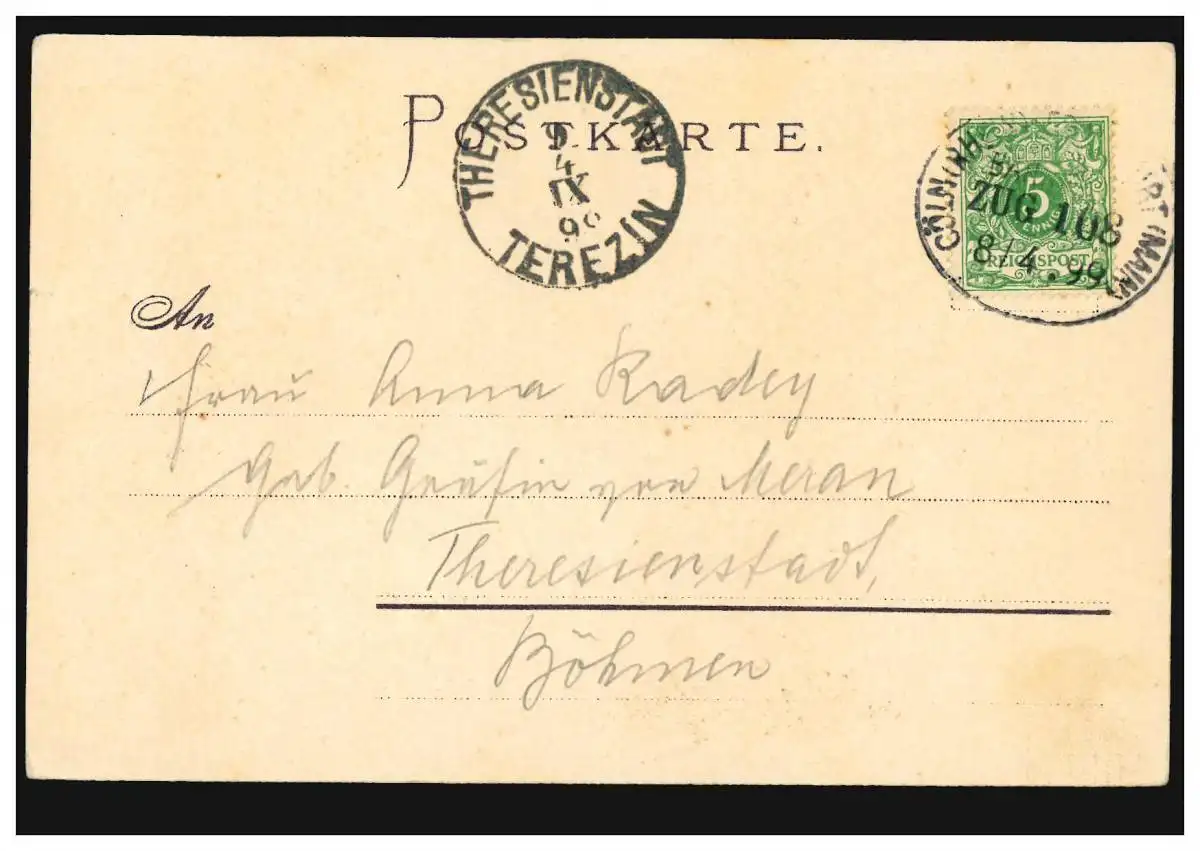 Tampon de poste ferroviaire CÖLN (RHEIN) - FRANKFURT (MAIN), ZUG 108 - 8.4.1899, Templier d'arrivée THERMSAVEDT / TÉREZIN 9.4.99 Contrôle: original Référence produit: 00000000037571>Remarque: Cet article n'est disponible qu'une seule fois. Vous recevrez exactement l'article représenté.