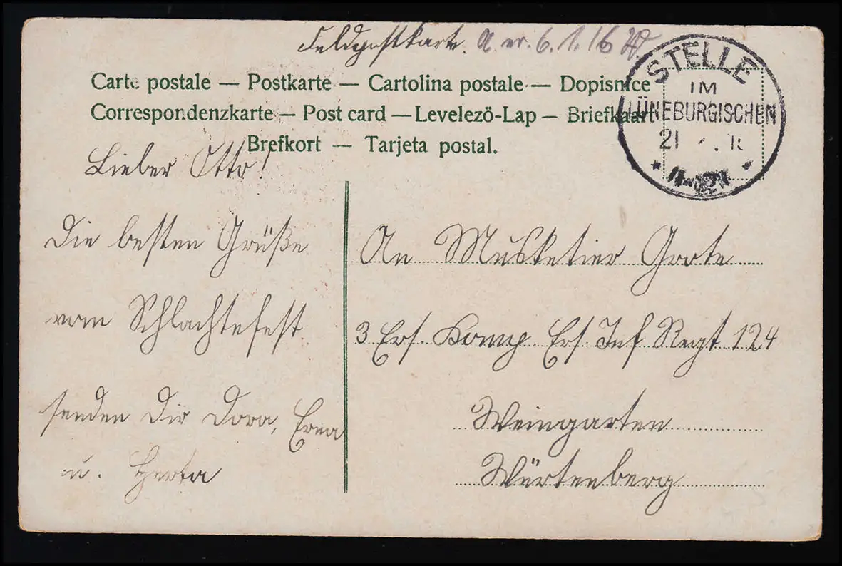 AK Papillons sur Roses, Poste de Champ, ORGANISME (en Lunebourg) 21.12.1915