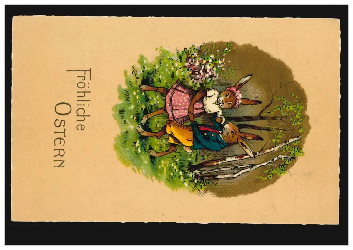 AK Pâques: Animaux Inhumains - Les lapins comme un couple d'amour dans les bois, couru en 1918