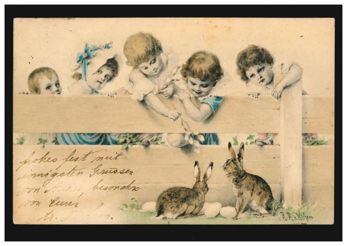 AK Pâques fille avec des lièvres oeufs chatons de pâture BZ. HALLE 28.3.1902