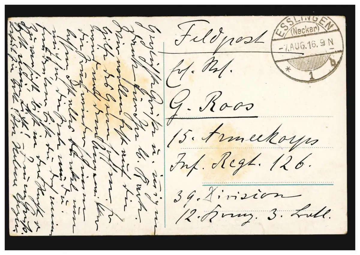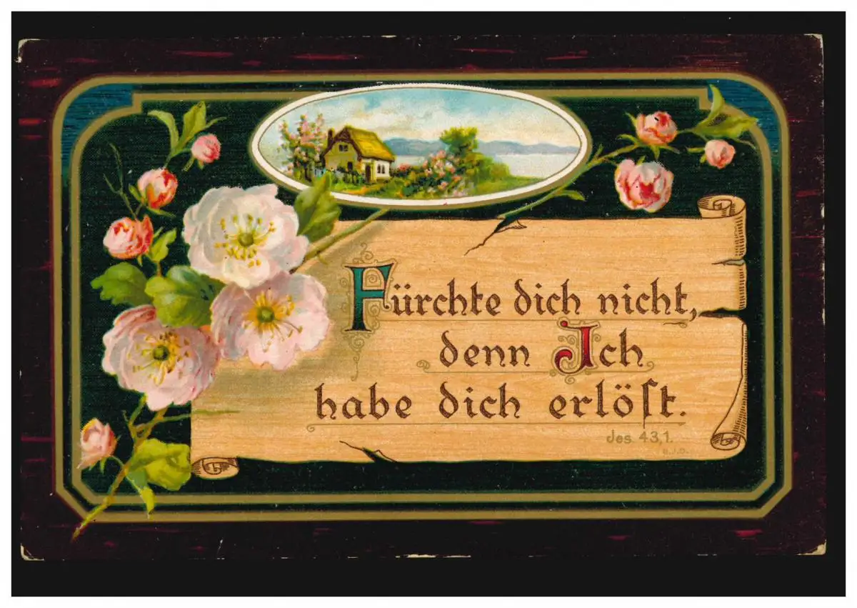 AK Paysage Sidylle avec Psaume És. 43,1 sur la carte postale de champ ESSLINGEN 7.8.1916