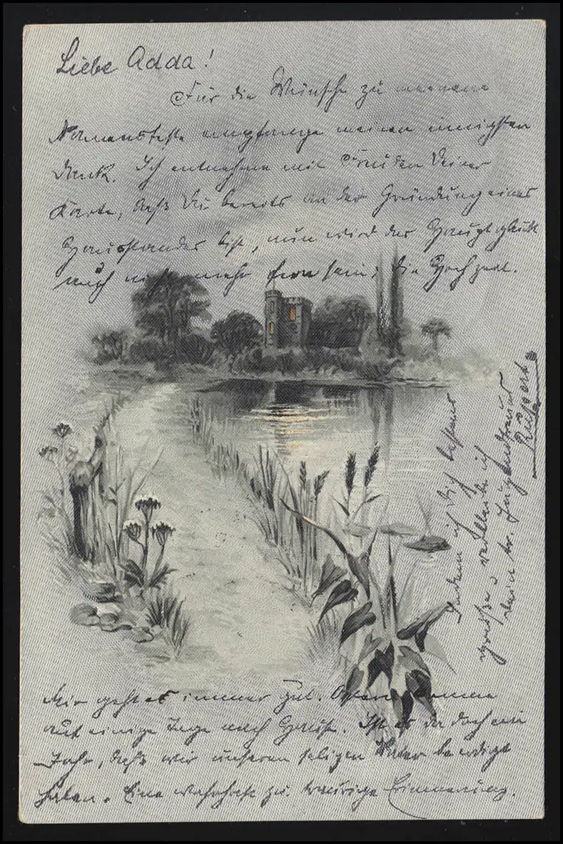 AK Paysage artistique avec eau et château, métallisé brillant, GALZONOURG 1901