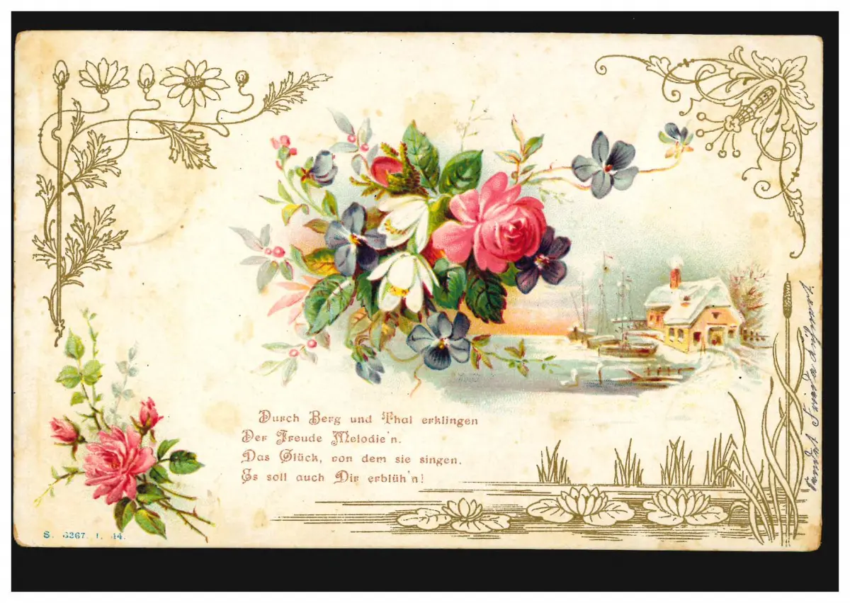 AK Paysage d'hiver avec des fleurs et des poèmes Sonner Par la montagne et la vallée ..., 1905