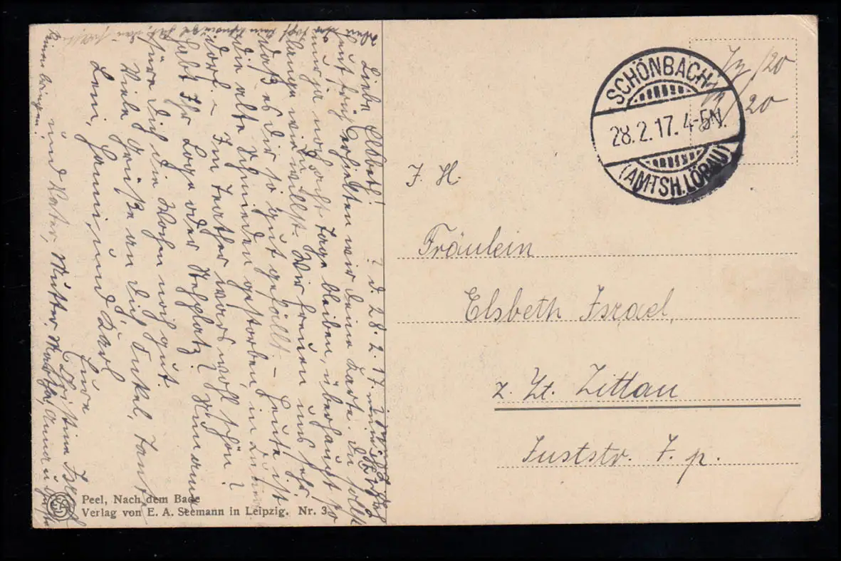 AK Peel Artiste: Après la baignade enfants devant la cheminée SCHÖNBACH / LÖBAU 28.2.1917