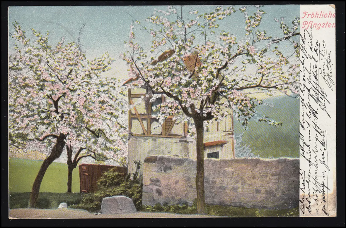 AK Pentecôte: Dorfidylle - arbres fleurissants, DRESDEN-NOUVELLE-VILLE 2.6.05 selon ZWICKAU