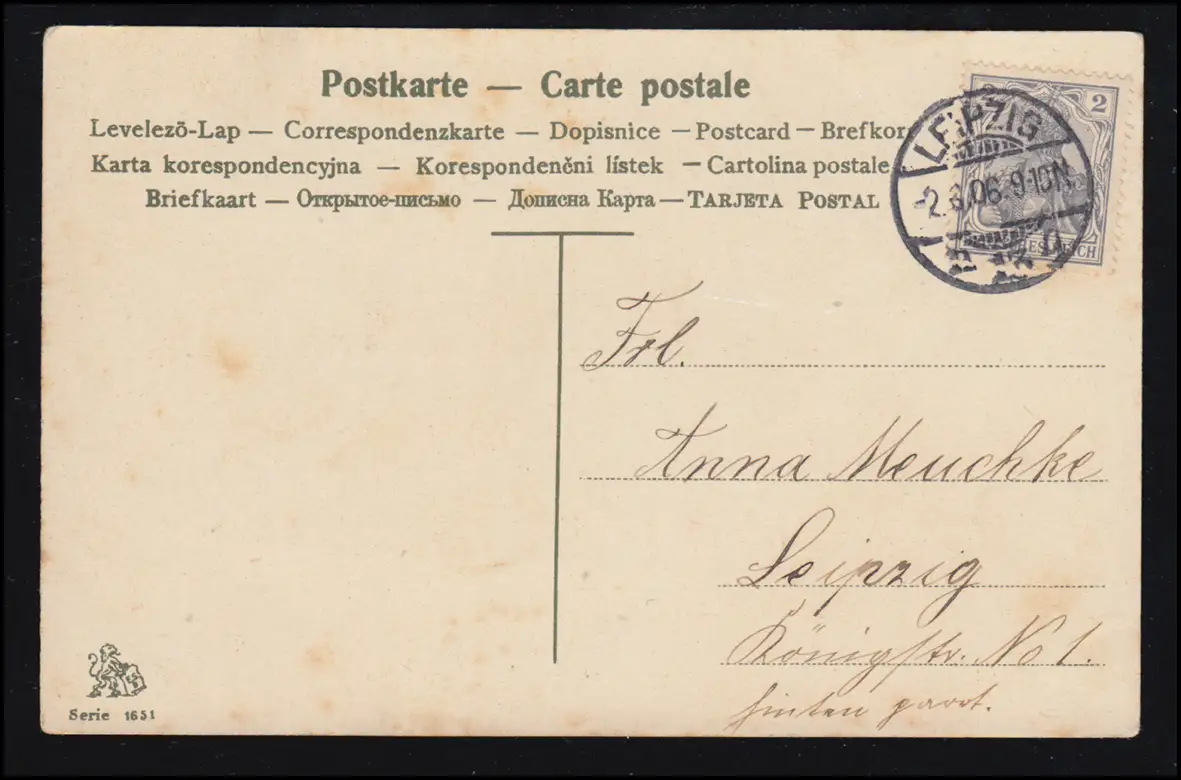 AK Pentecôte: Excursion en famille dans le parc, carte postale locale LEIPZIG 13 - 2.6.1906