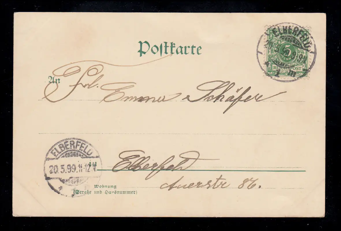 AK Pentecôte: Femme dans le parc avec poème, carte postale locale ELBERFELD 20.5.1899