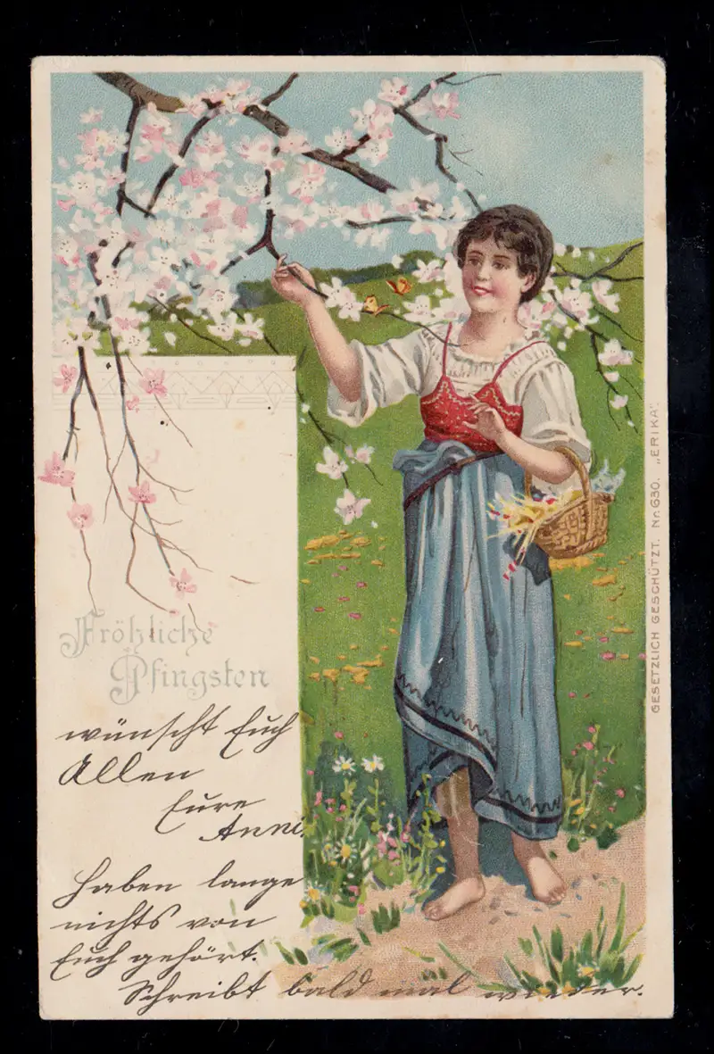 AK Pentecôte: Femme pieds nus à la récolte des fleurs, HAMBURG selon BOCKENEM 26.5.2001