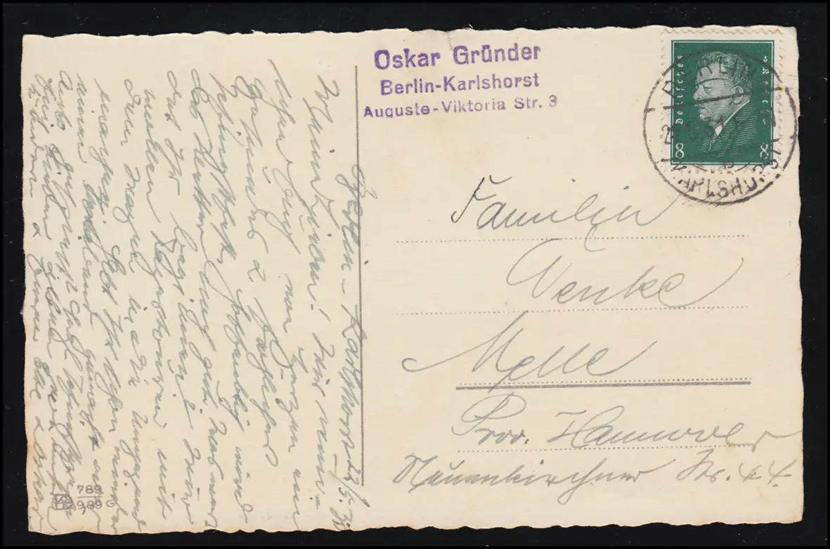 AK Pentecôte: Fleuris au printemps sur la rivière avec pont, BERLIN-KARLSHORST 22.5.1931