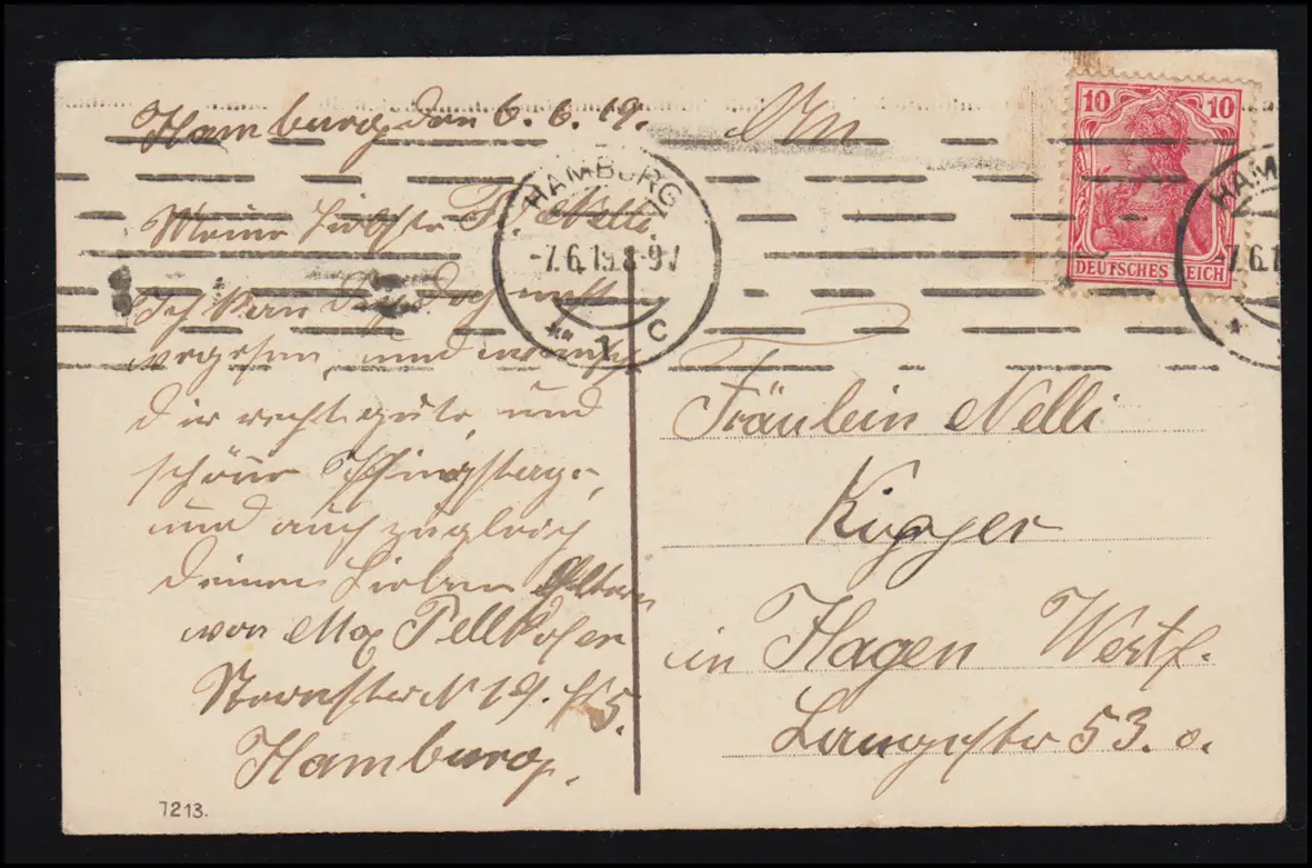 AK Pentecôte: Paysage du village avec rivière dans la couronne de fleurs, HAMBURG 7.6.1919