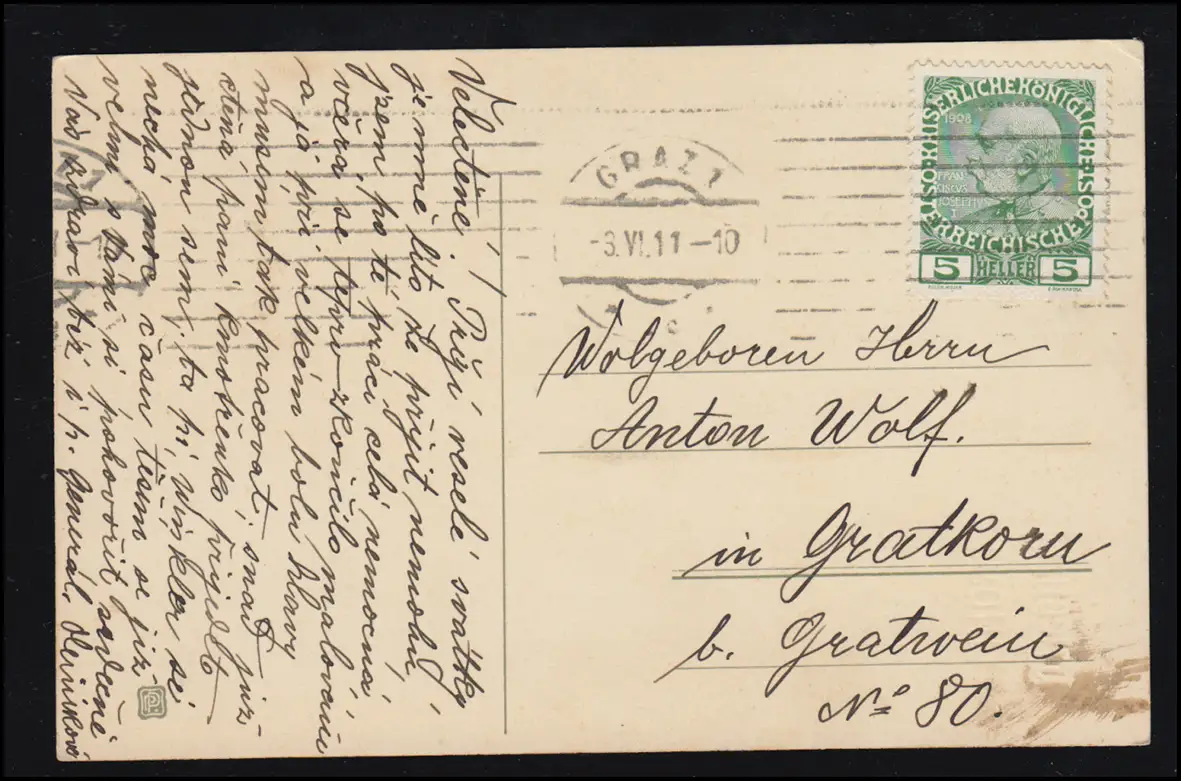 AK Pentecôte: Villageidylle avec bouleaux et rivière au printemps, GRAZ 3.6.1911