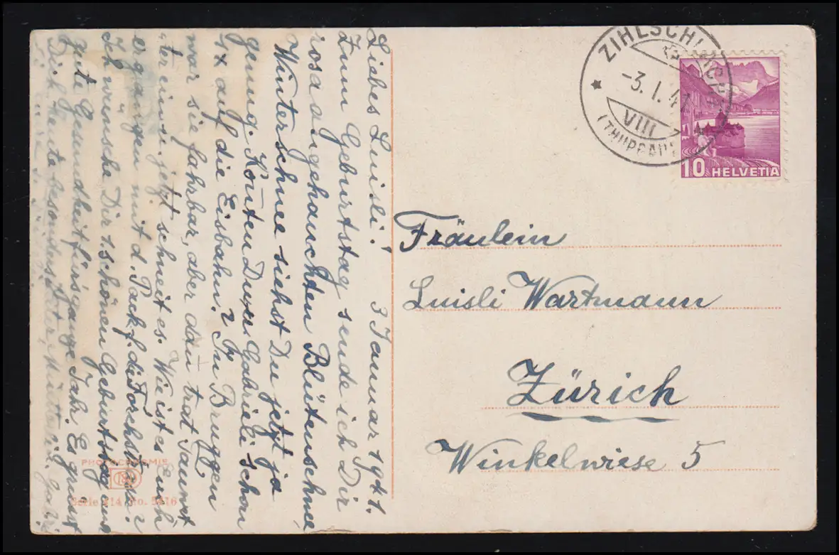 AK Pentecôte: route du village avec arbres fleurissants, ZHILSCHLACHT 3.1.1941