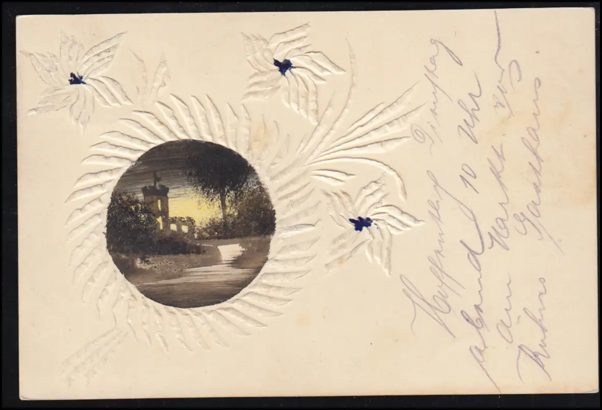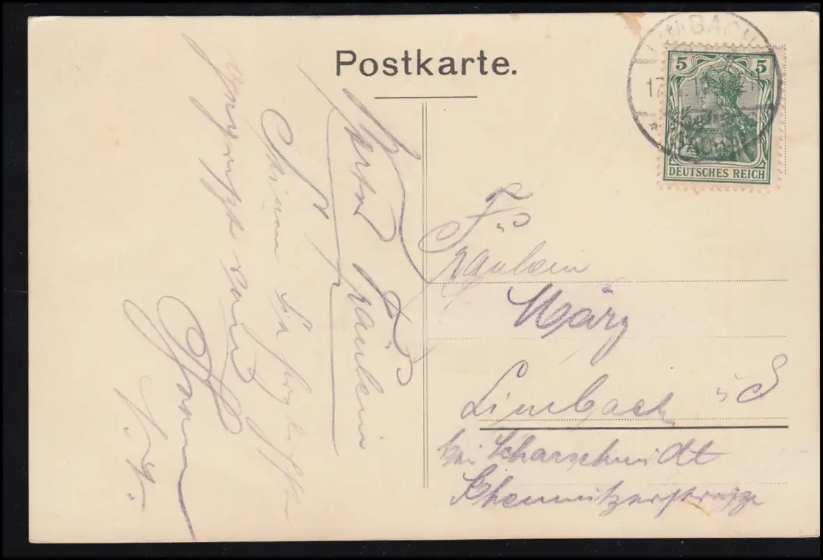 AK Petit écran de l'artiste Parkidylle avec guirlande fleurie, LIMBACH (Sachts.) 17.1.1910