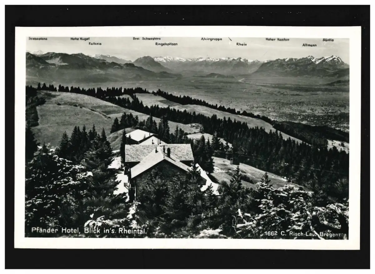 AK Pfänder Hotel, vue sur la vallée du Rhin, Kisslegg (Württ) 6.6.1940