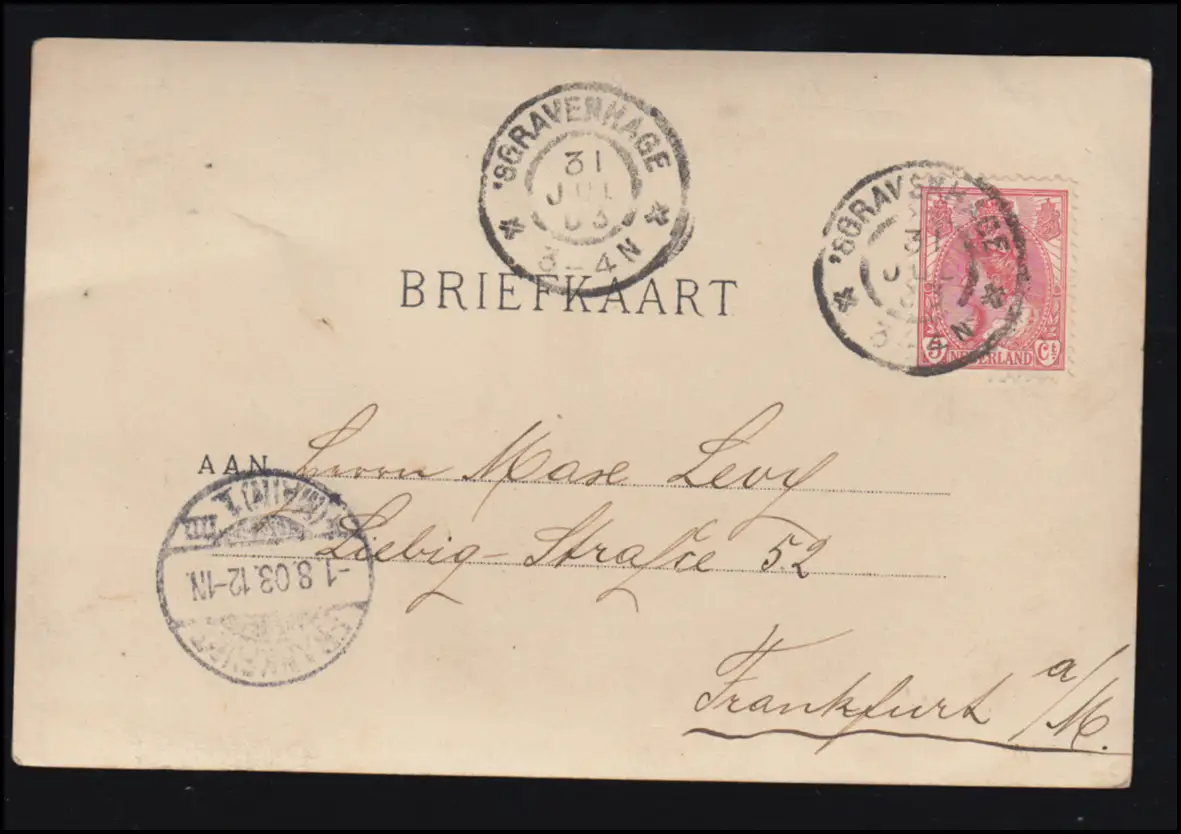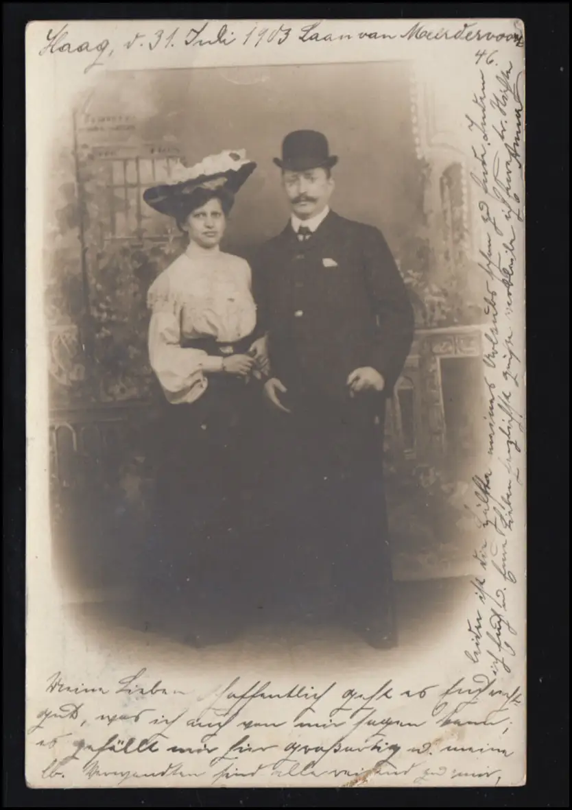AK Photo couple hollandais, s'GRAVENHAGE 31.7.1903 après FRANKFURT/MAIN 18.03.