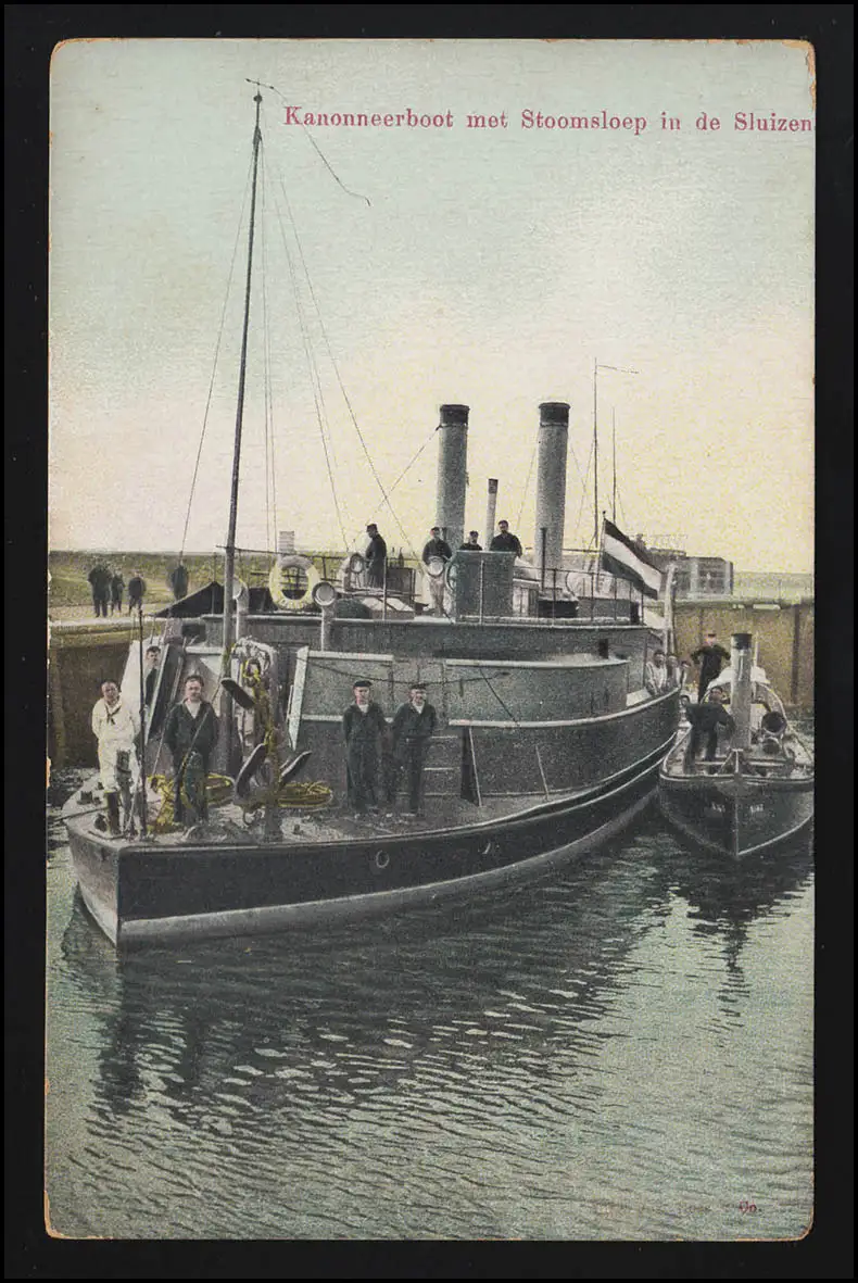AK Photo marine Pays-Bas, bateau à vapeur bateau de canon équipage, inutilisé