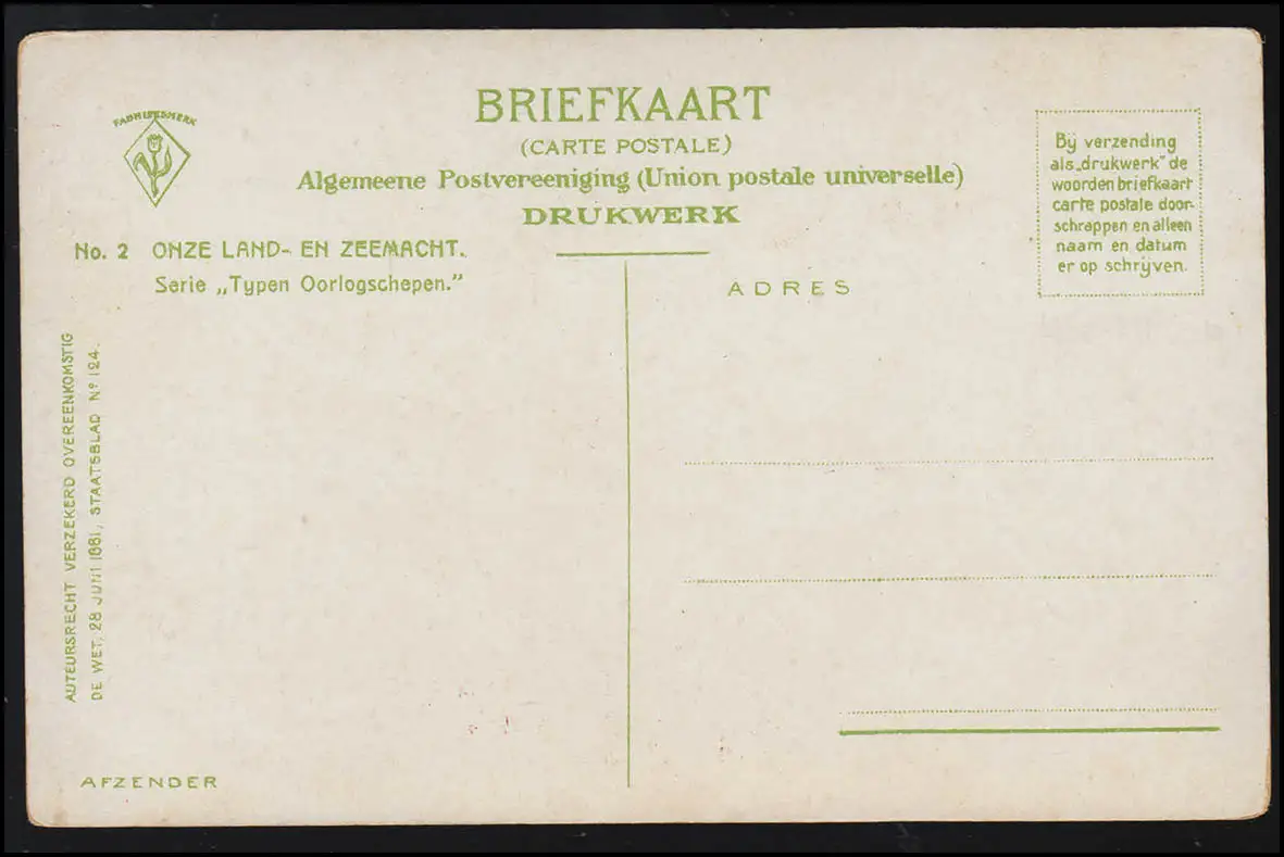 Onze Land - En Zeelag. Série "Types Oorlogschepen." Examen: original Référence produit: 00000000048320