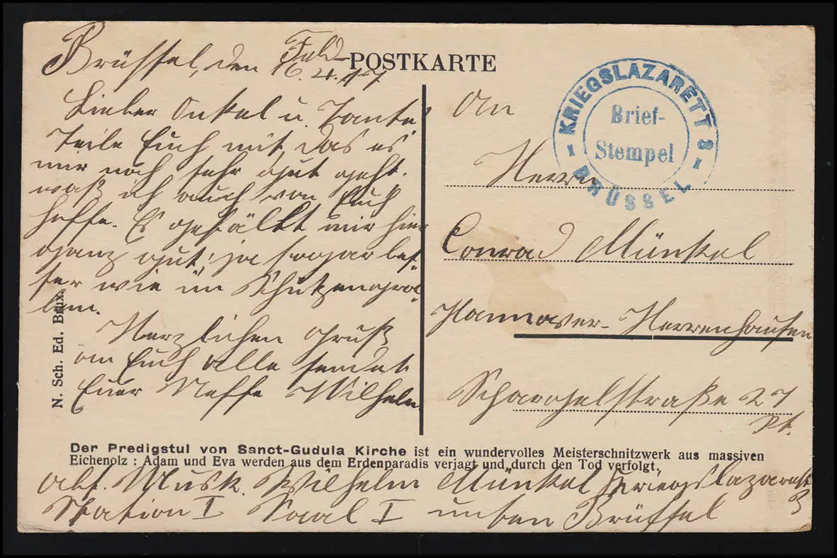 AK Predigstuhl Eglise St. Gudule BRUXELLES / Bruxelles Hôpital de guerre 3, 16.4.1917