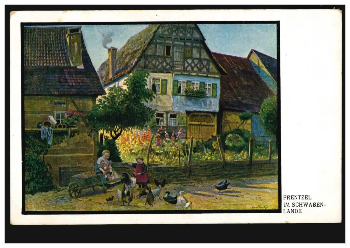 AK Prentzel: Dans le Schwaben-Lande Dorfidylle avec des poulets, inutilisé