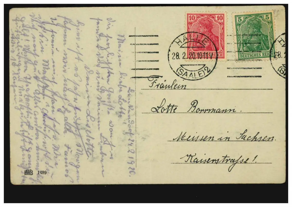 Carte d'ombre noir, édition HWB, HALLE (SAALE) 2 - 28.2.1920 Vérification: original Référence produit: 00000000030387