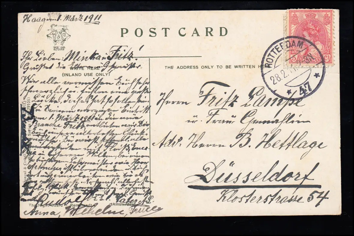 AK Rembrandt: La Garde de Nuit, ROTTERDAM 28.2.1911