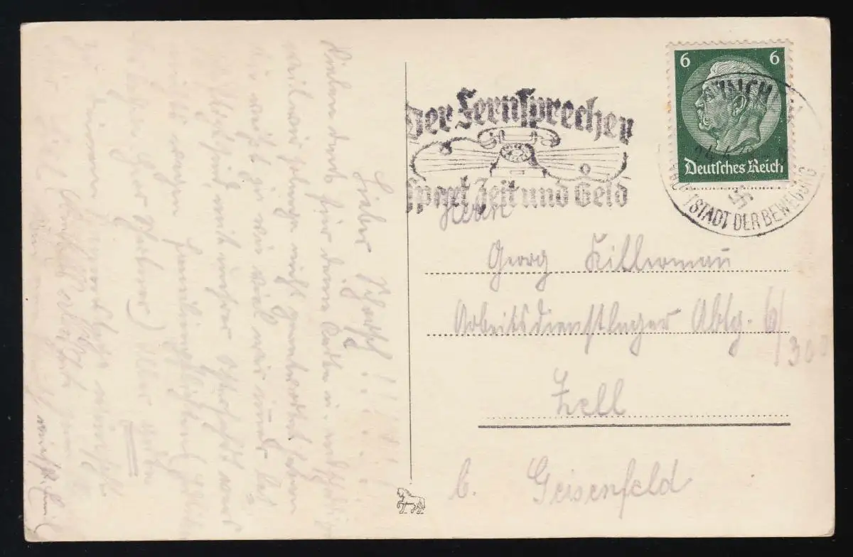 AK Roses blanches, jour de nom, "Les téléphones économisent du temps & de l'argent" Munich 24.4.1938