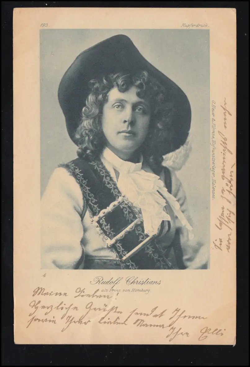 AK Rudolf Christians en tant que prince d'Homburg, BERLIN SO 36b 12.8.03 Carte postale locale