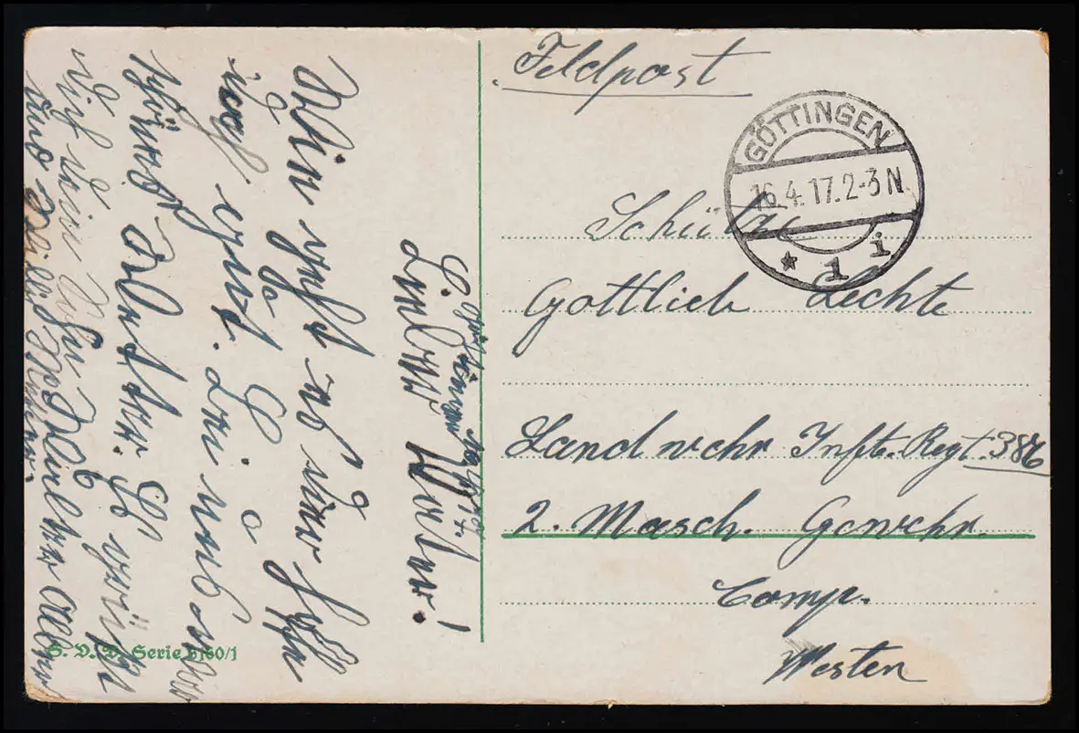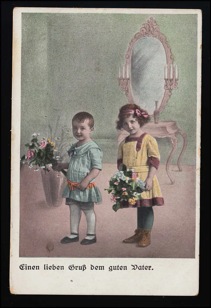 AK S.D.Serie 6160/1 "Salutations au bon père" Fleurs pour enfants, GÖTTINGEN 16.4.17
