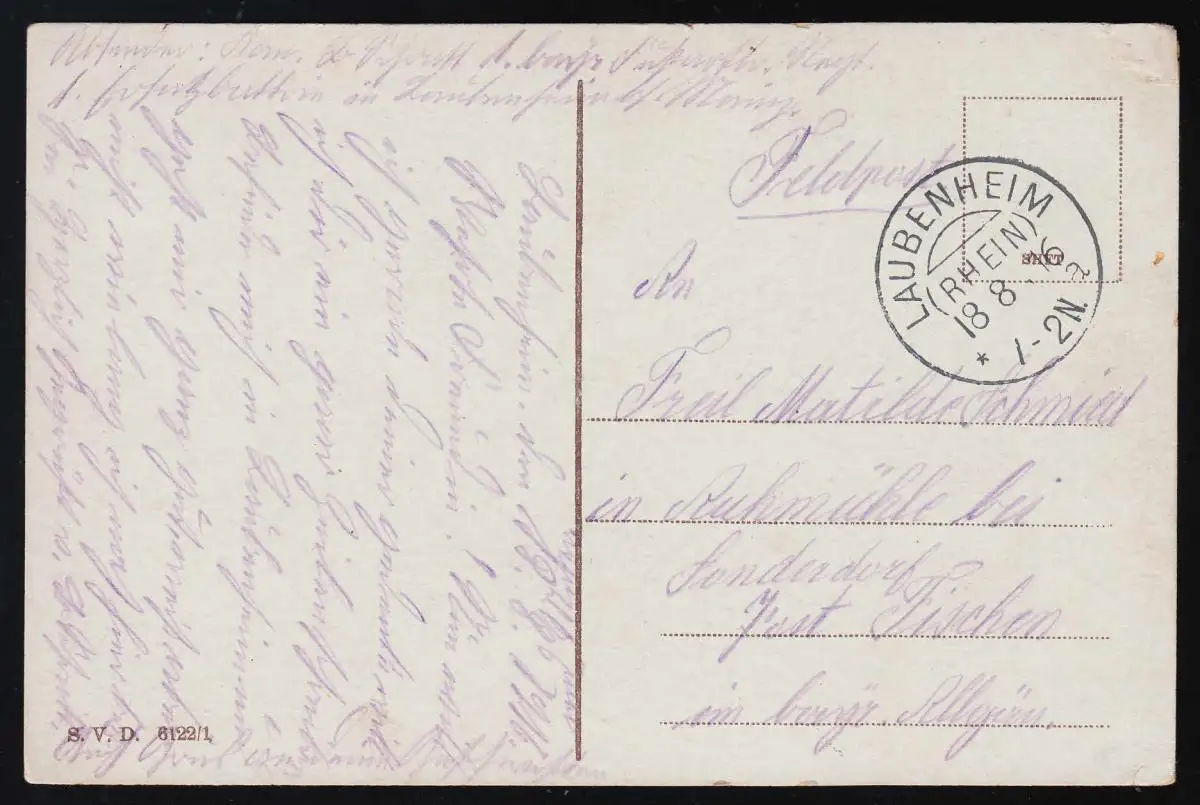 AK S.V.D. 6122/1 Un salut de cœur de fleurs rouges + violette Laubenheim 18.8.16