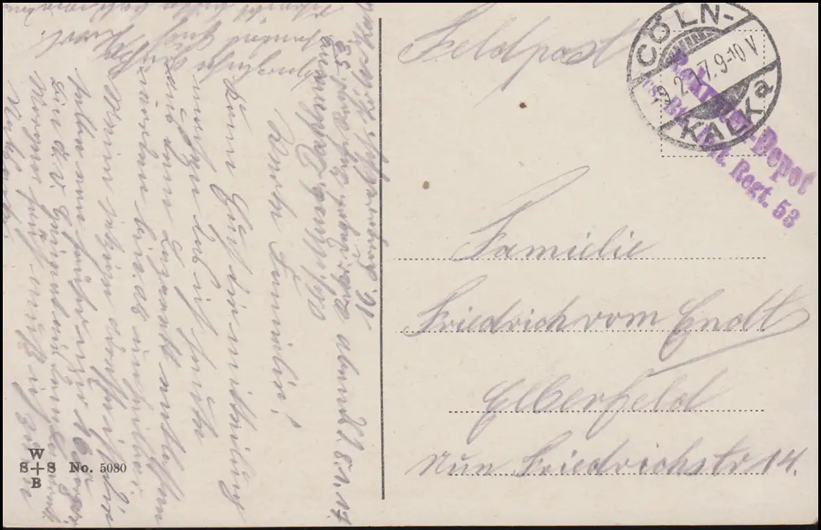 AK Sah un Knab un Roslein debout, Feldpost Rekrue-Depot CÖLN-KALK 9.2.17