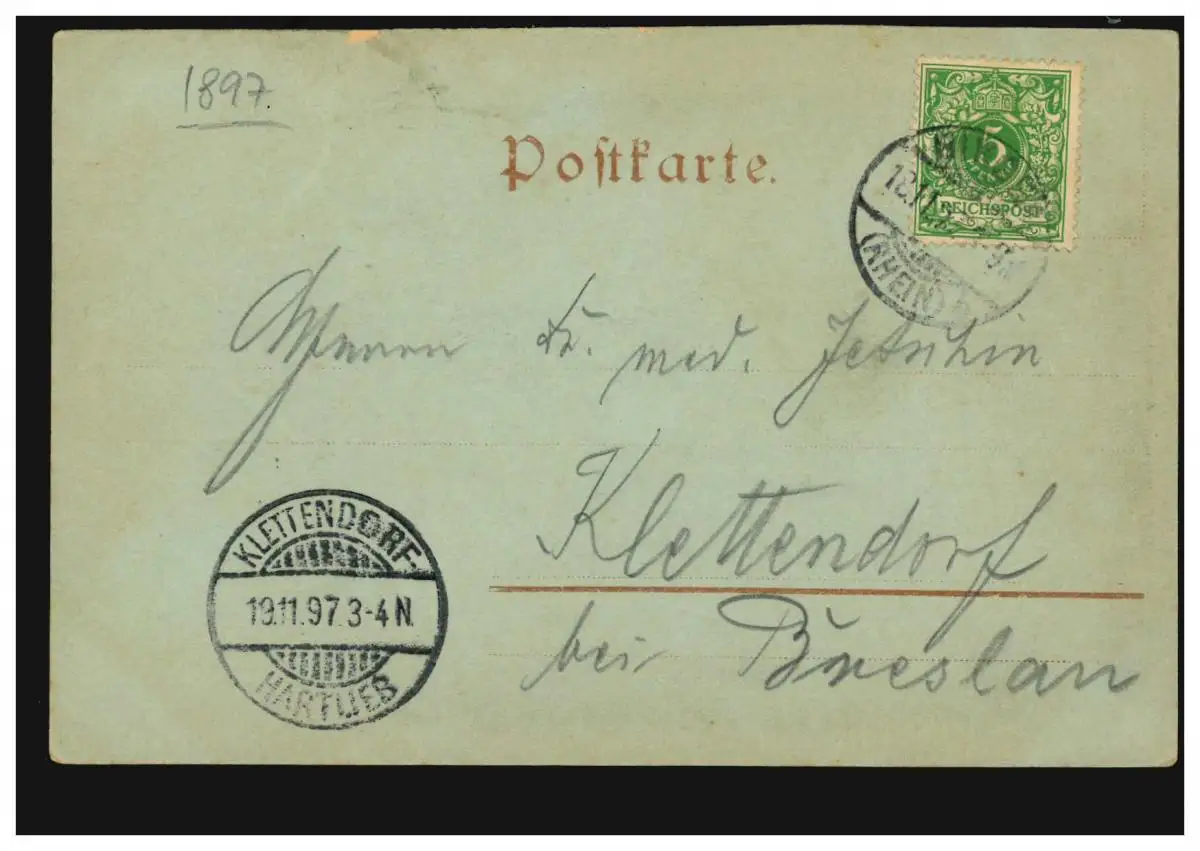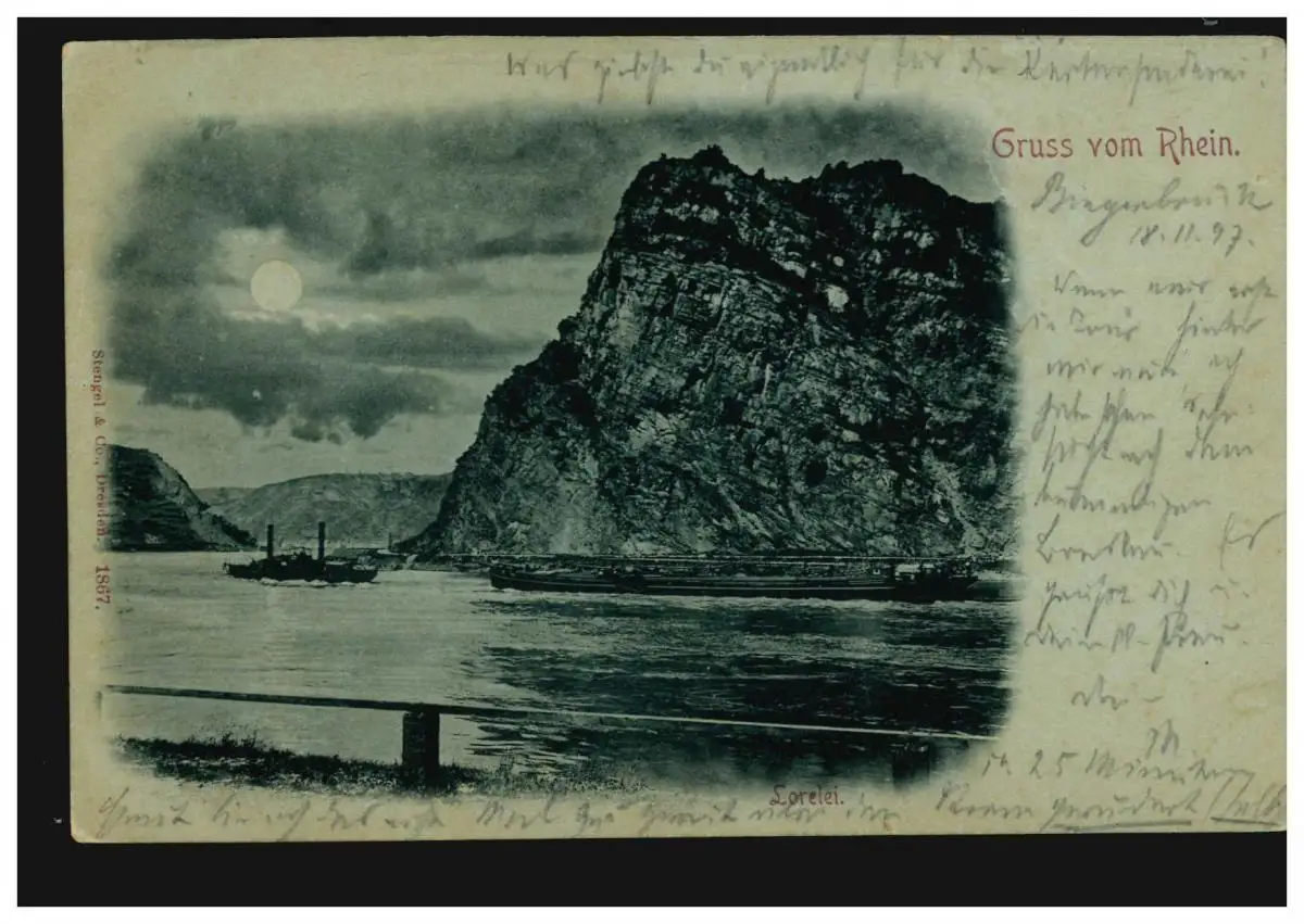 AK Salut du Rhin: Lorelei, 18.11.1897 vers KLETTENDORF-HARTLIEB 19.11.97