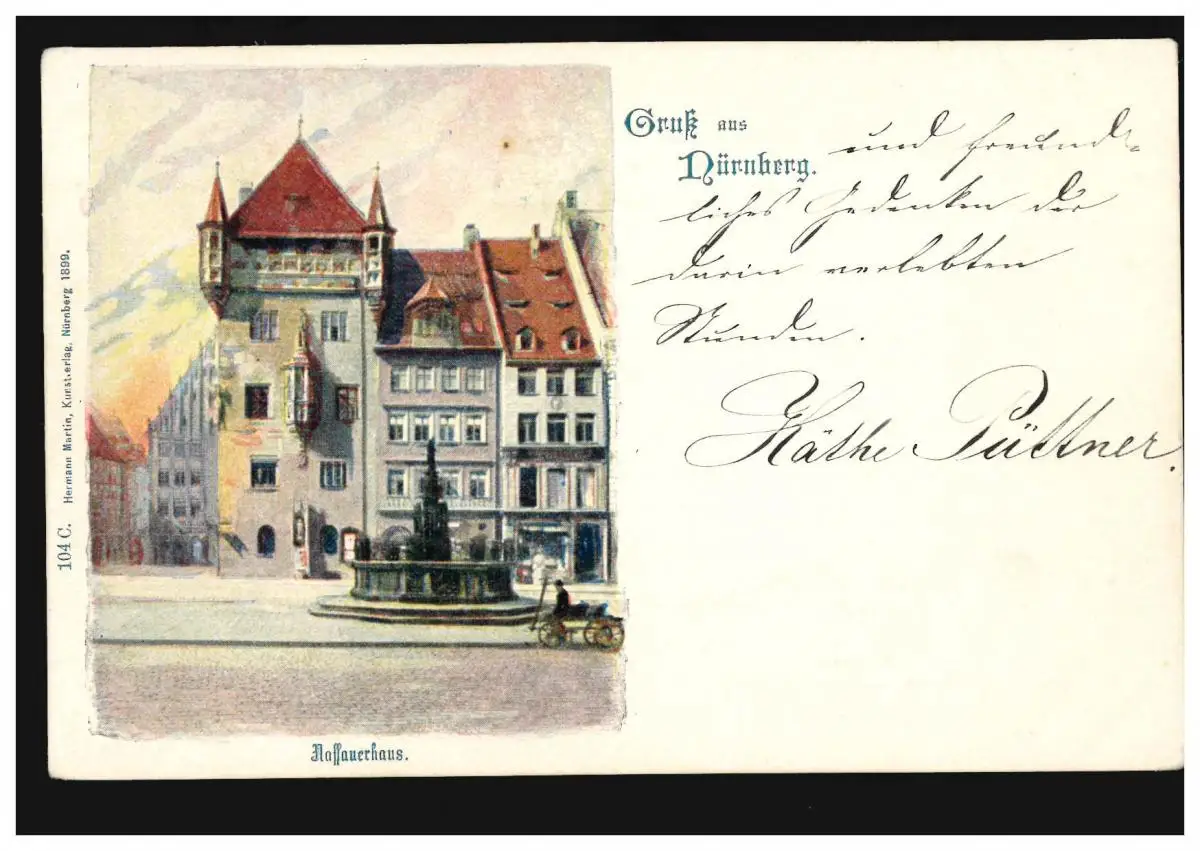 AK Salutation de Nuremberg: Nassauerhaus, Verlag Hermann Martin 1899, inutilisé