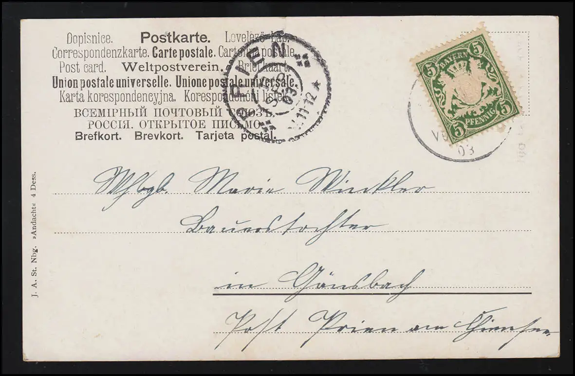 AK "Salutations à toi!" Les enfants prient les Alpes Saintes, PRIEN CHIEMESEE 11.9.1903