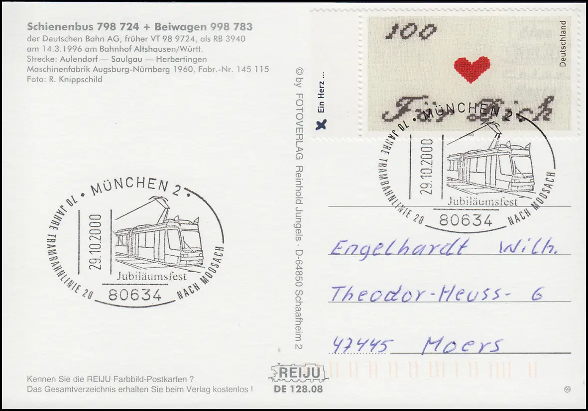 Bus ferroviaire AK 798 724 avec side-car 998 783, SSt MÜNCHEN ligne de tramway 29.10.00