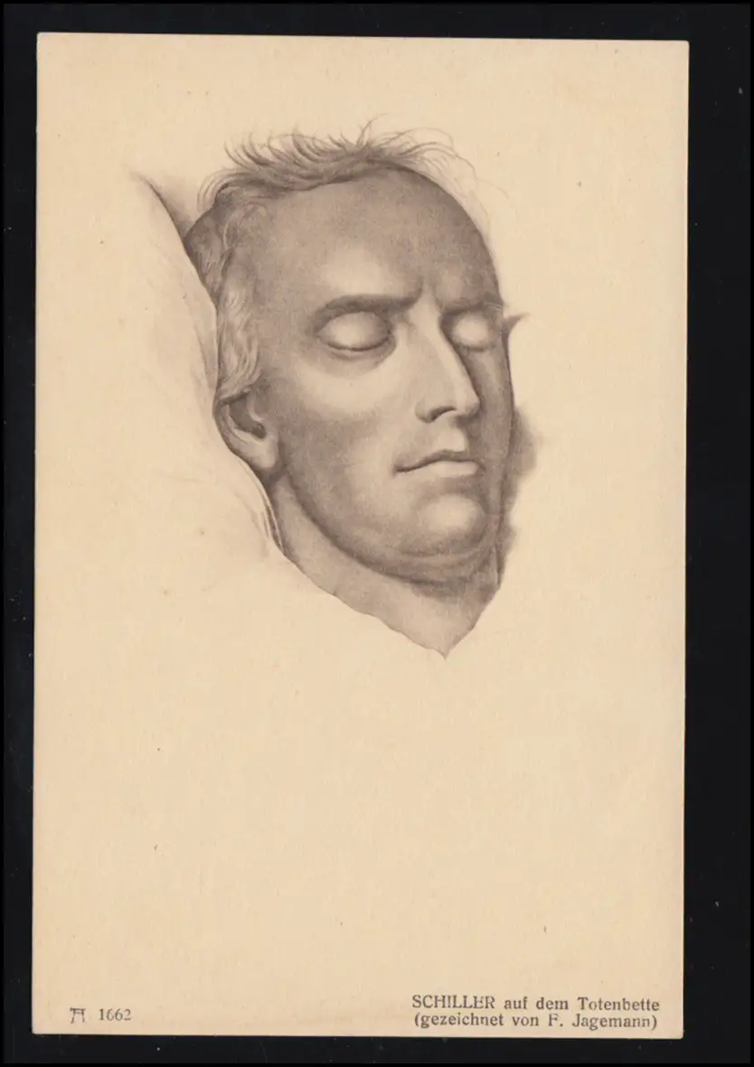 AK Schiller sur le lit de la mort, Ackermann's Kunstverlag Munich, inutilisé