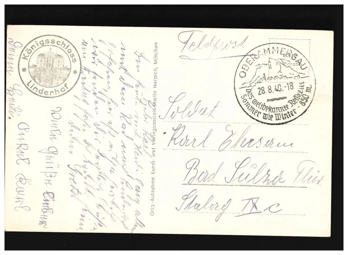 AK Schloss Linderhof Bayern, Königschlos, Feldpost, Oberammergau 28.8.1918