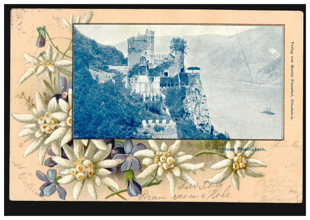 AK Château Rheinstein avec Edelweiss-Girlande, TrechtingshausEN 28.8.1899