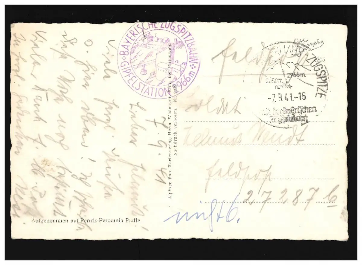 AK Schneefernerhaus Zugspitzsfuniculaire, Feldpost, Schnenfermerhaus 7.9.1941