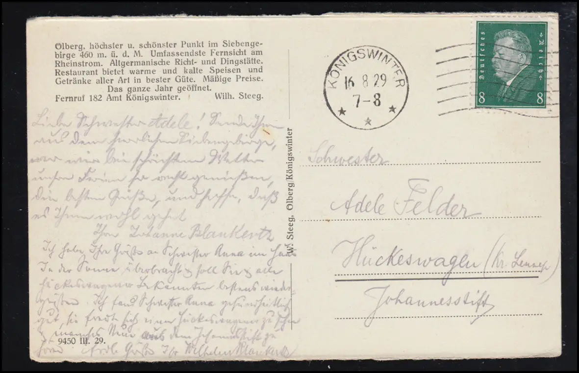 AK Sept Monts et le Rhin vus du mont des Oliviers, KÖNIGSWINTER 16.8.1929