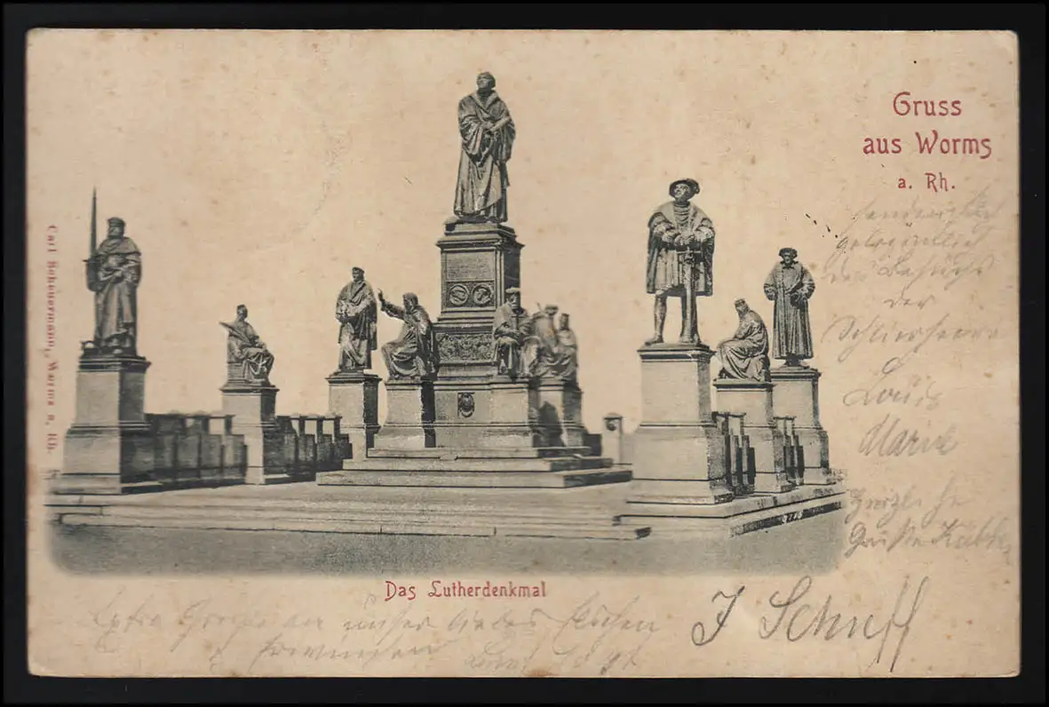 Carte de solitaire AK Stange & Co Lutherdenkmal Gruss de WORMS / WINNWEILER 1/2.5.00