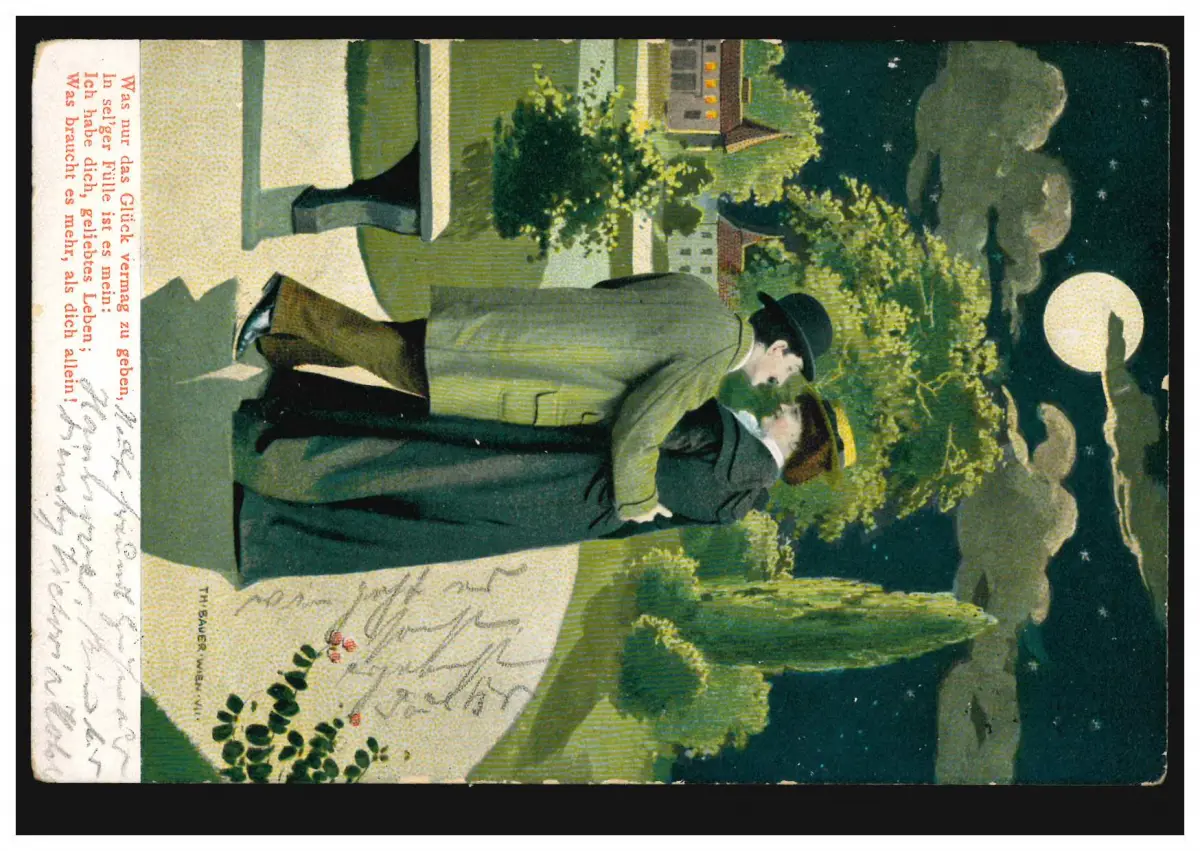 AK Th. Bauer, Vienne: Les amoureux du clair de lune, poème: Ce que seul le bonheur peut faire