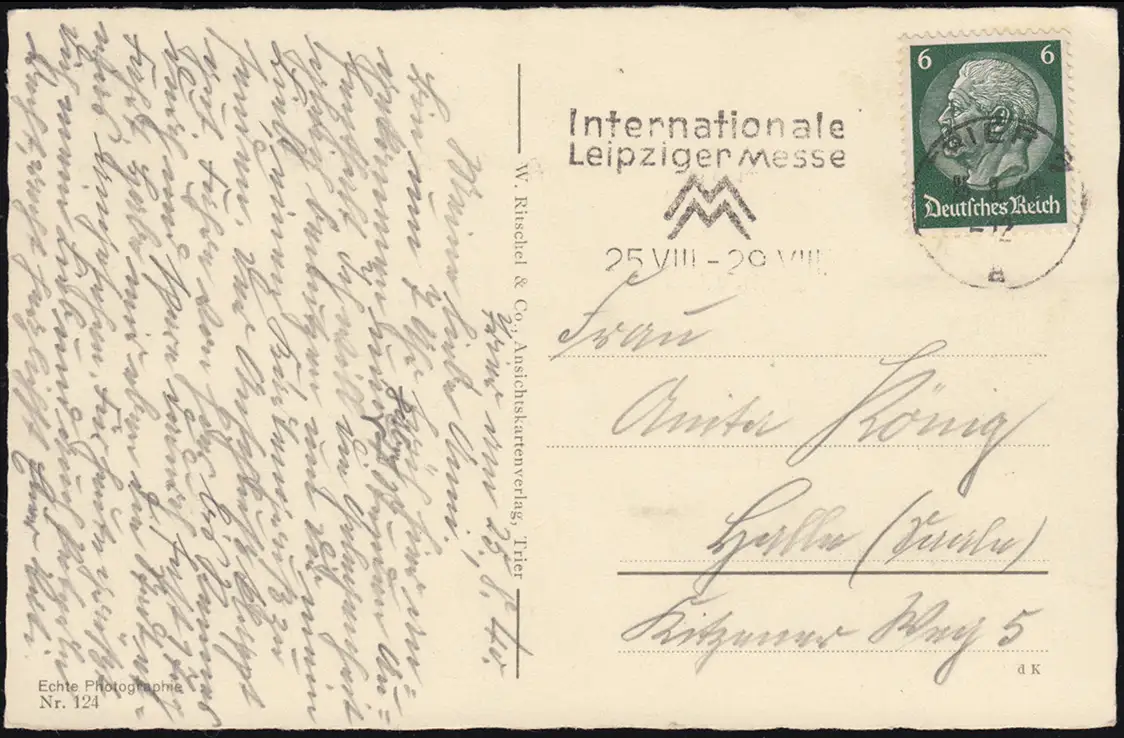 AK Trèves: Pont romain, timbre publicitaire Leipziger Messe TRIER 25.8.1940