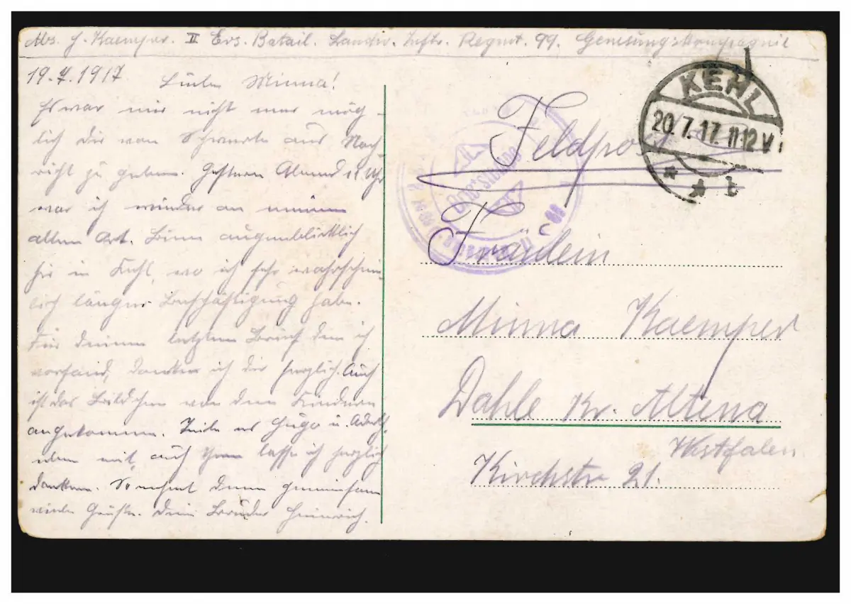 expéditeur: II. Bataillion de remplacement régiment d'infanterie Landwehr 99 - Compagnie de rétablissement, couru à Dahle / Altena Examen: original Référence produit: 00000000038508>Note: Cet article n'est disponible qu'une seule fois. Vous recevrez exactement l'article représenté.