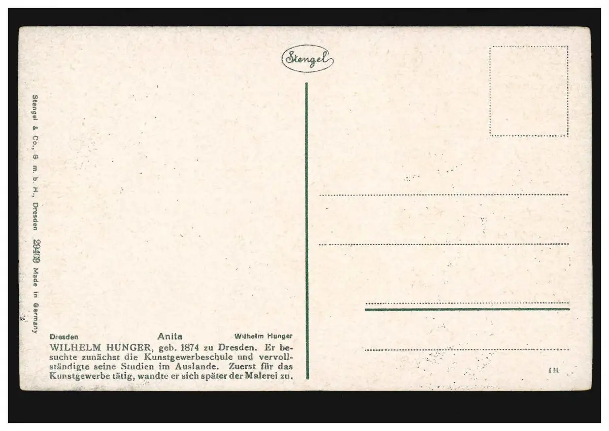AK W. Hunger Portrait Anita, édition de Stengel Dresde, inutilisé