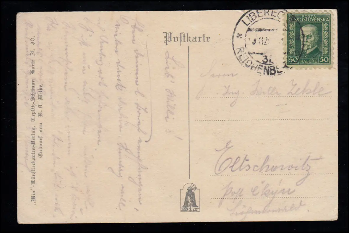 AK amour K.A. Wilke: Un cœur fidèle, chantant son son ..., LIBEREC 1925