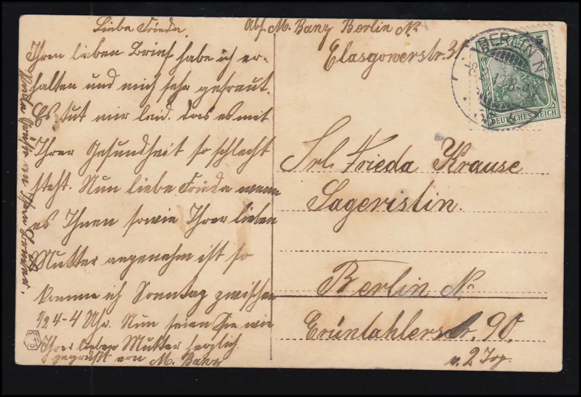 AK amoureuse femme souriante avec Ange, BERLIN N 65 b 8.2.1912