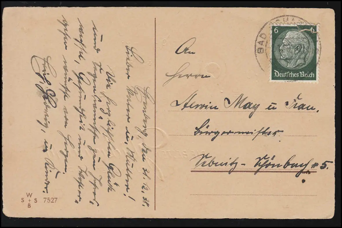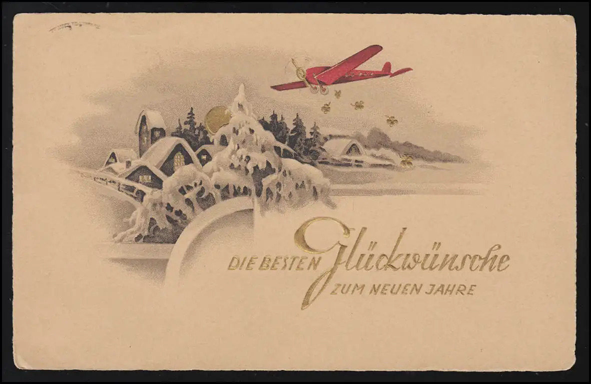 AK avion hélice, trèfle chanceux Nouvel An neige, BAD SCHANDAU 1.1.1939