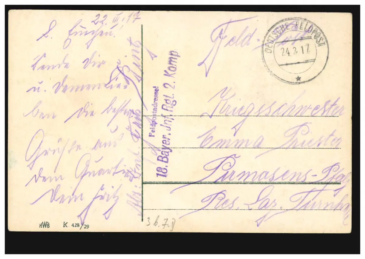 AK branche de chêne - uni et fort ! Feldpost 24.2.17 BS 18. Bayer. Inf.-Rgt. 2 Kp.