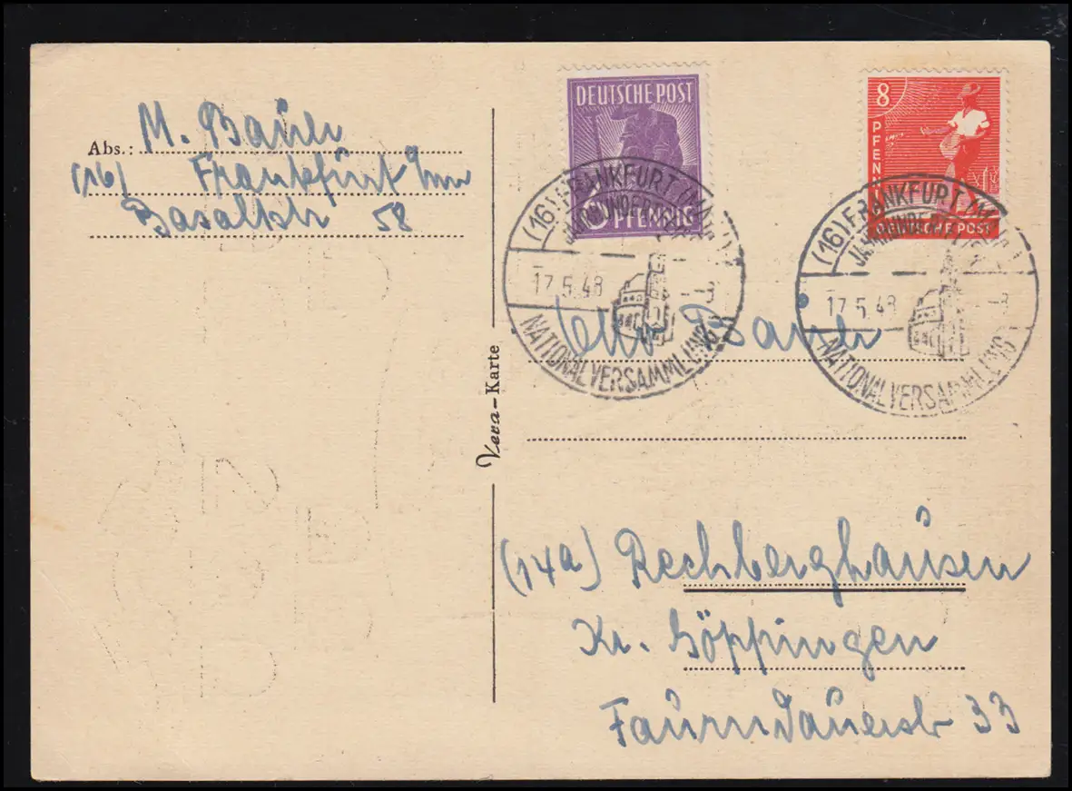 AK célébration du siècle de Francfort / Main 18.5.1948, Assemblée nationale de la SST 17.5.48