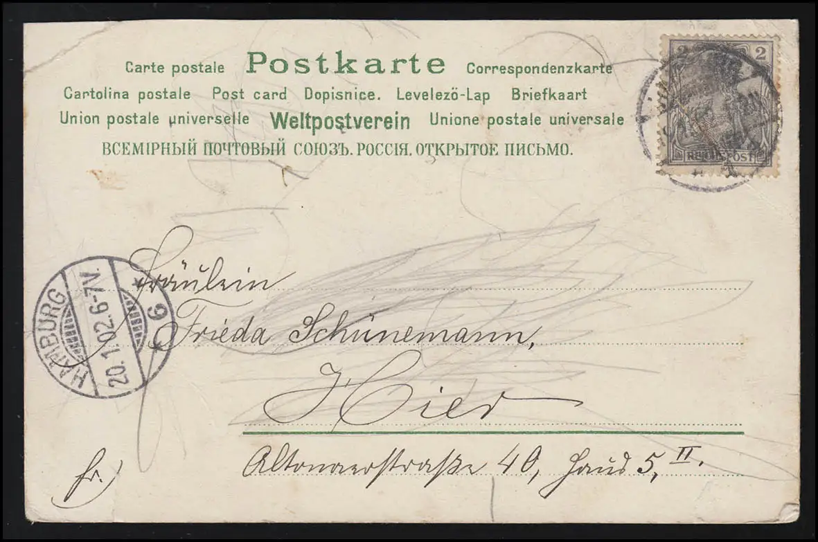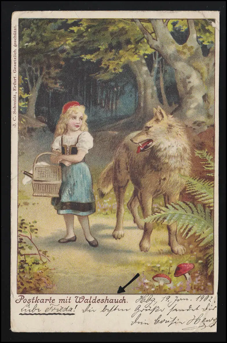 AK contes de fées Capeau rouge + le méchant loup, Frères Grimm, HAMBURG 20.1.2001